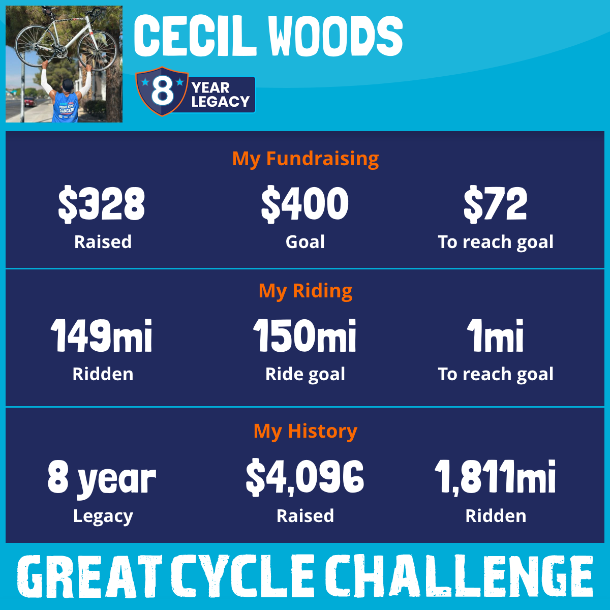 I am riding 150 mi in memory of Cameron Woods. Please sponsor me and support my challenge to fight kids' cancer and save little lives.